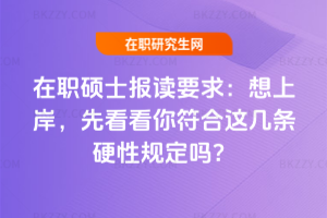 在職碩士報讀要求分同等學力申碩與非全日制碩士兩類。同等學力申碩課程班大專及以上可報,申碩需本科有學位滿3年;非全日制碩士管理類需本科滿3年或大專滿5年,其他專業學歷達標即可。需按類型準備身份證、學歷證明及工作證明,避免混淆兩類報考要求。……