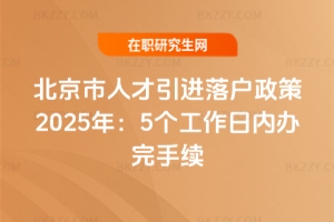 根據北京市人才引進落戶政策2025年要求,符合條件引進人才可快速辦理引進手續,最快5個工作日辦理完成引進手續。……
