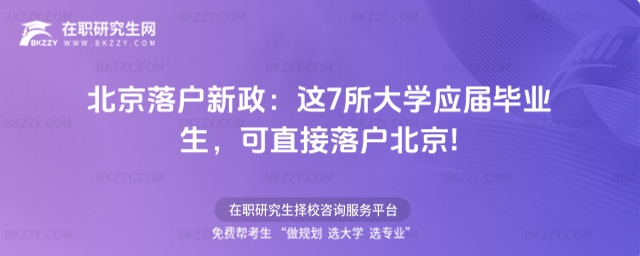 2025年7月5日,北京市發布了《北京市引進畢業生管理辦法》。其中就提到了七所大學應屆畢業生可直接落戶北京,具體內容跟著bkzzy在職研究生網來瞧瞧吧!